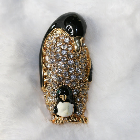 Mom & Baby Rhinestone Penguin Brooch Pin, Sea Animal Crystal Penguin Brooch