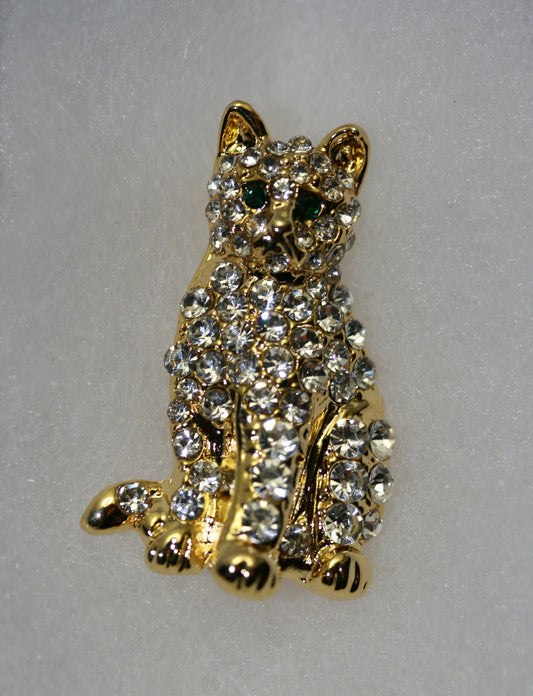 Rhinestones Gold-Tone Cat Brooch, Pin & Post Earring Set, Crystal Cat Pin Brooch, Cat Earrings.