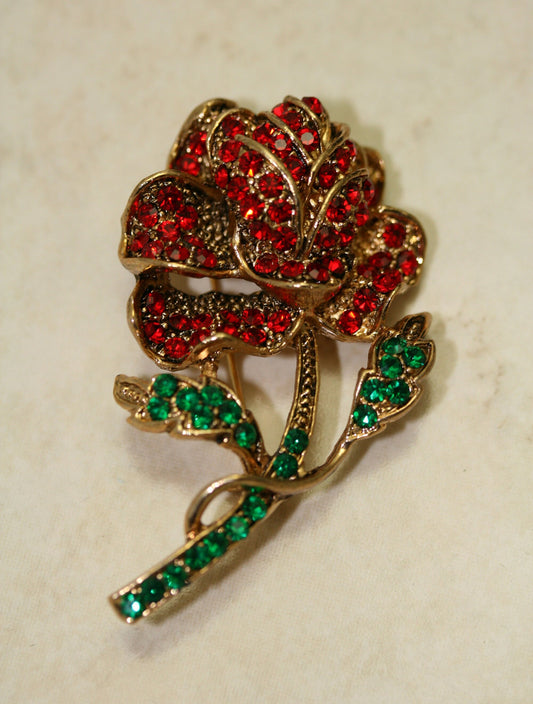 Vintage Large Ruby Garnet Olivine Rhinestone Rose Pin Brooch Jewelry, Fashion Valentine's Day Roses Pin