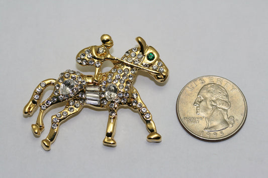 Vintage Kentucky Derby Racing Horse Jockey Pin Brooch, Rhinestone Jewelry, Equestrian Horses Kentucky Derby