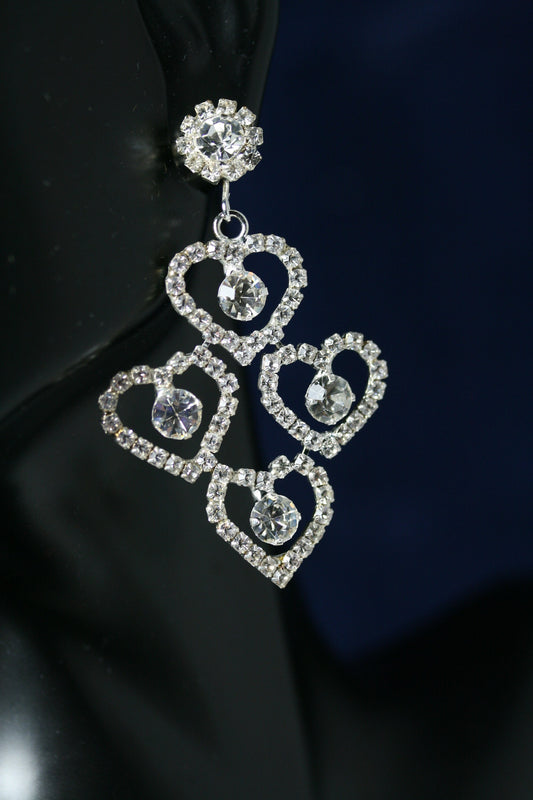 Clear Rhinestones Open Heart Post Drop Earrings Décor Drop Earrings Bridal Wedding Beautiful Dazzle Crystal Dangle Fashion Jewelry