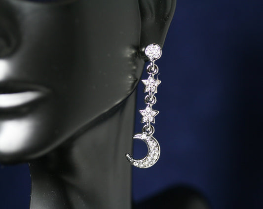 Clear Crystal Rhinestone Moon Earrings Star Dangle Drop Link Stud Earrings