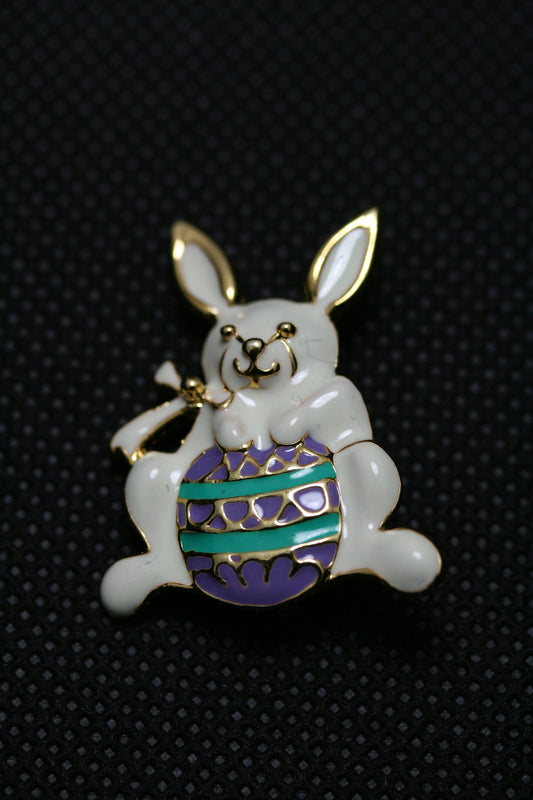 Enamel Bunny Rabbit Easter Egg Pin Brooch, Easter Bunny Pin, Easter Jewelry