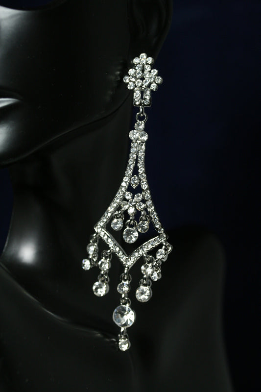 Dangling CHANDELIER DIAMOND EARRINGS Pierced in silver or gold clear rhinestones elegant bridal earrings Dazzle Crystal Fashion Jewelry