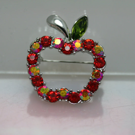 Rhinestone Apple Crystal Fruit Pin Brooch, To Teacher Apple Fruit Brooch Pins For Gift