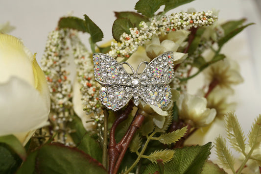 Rhinestone Butterfly Brooch, Silver AB Crystal Rhinestone Pins, Bridesmaid Bride Brooch, Wedding Bouquet Pins Broaches
