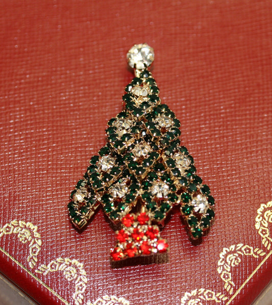 Rhinestone Christmas Tree Brooch/Pin Green and Red Diamond Christmas Jewelry