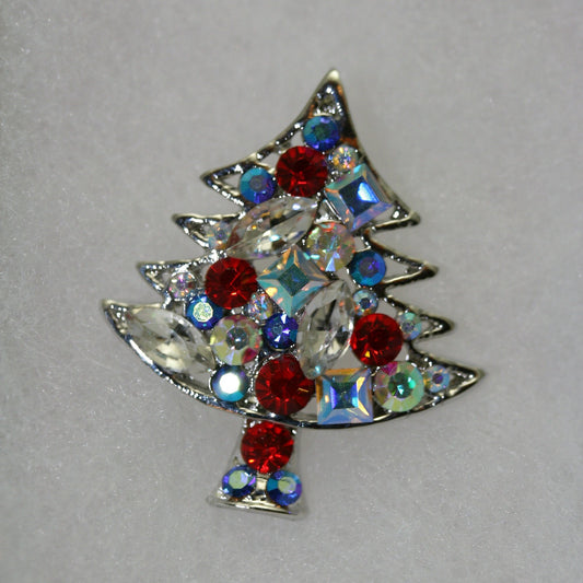 Rhinestone Christmas Tree Brooch Pin, Multi Colors Crystal Xmas Tree, Holiday Jewelry Gift