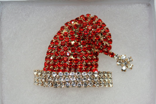 Rhinestone Christmas Santa Clause St. Nick Hat Brooch, Crystal Santa Hat Pin, Winter Holiday Jewelry, Christmas Gift