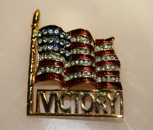 Red White Blue USA Patriotic Flag Rhinestone Pin Brooch, Vintage 4th July Jewelry Victory Brooch