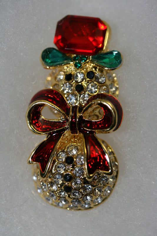 Rhinestone Christmas Snowman Brooch, Pin, Christmas Gift Jewelry