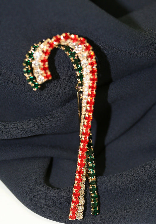 Rhinestone Christmas Triple Candy Cane Brooch Pin, Crystal Xmas Holiday Jewelry Gift