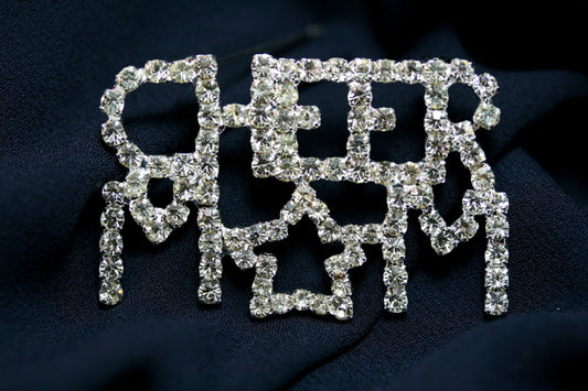 Rhinestone Cheer Mom Pin Brooch, Costume Jewelry Openwork Red & Clear Crystals Words