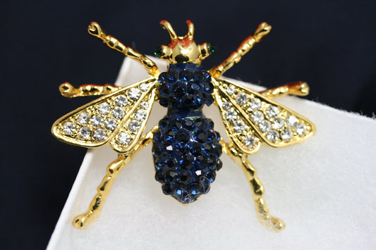 Rhinestone Blue Sapphire Bumble Bee Pin Brooch for Women, Crystal Bee Pin Jewelry