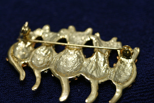 Rhinestone Cats Brooch, 5 Kitties Gold Pin, Two-tone Cats Jewelry, Kitty Brooch