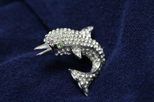 Rhinestone Animal World Dolphin Brooch, Crystals Sea Life, Gift Idea Dolphin Bling Pin