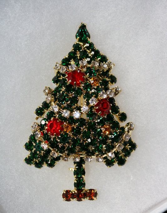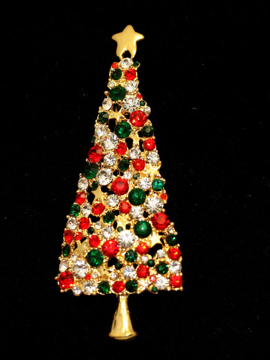 Rhinestone Christmas Tree Pin, Crystal Christmas Tree Brooch