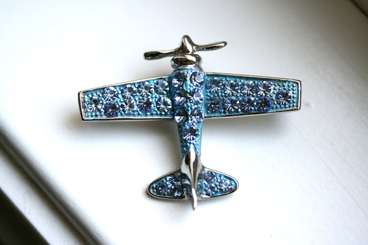 Rhinestone Airplane Brooch Pin Moving Propeller Gold tone Airplane Brooch, Silver Tone Airplane Pin