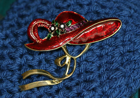 Red Hat Society Vintage Red Enamel Brooch Pin Red Hat Pin