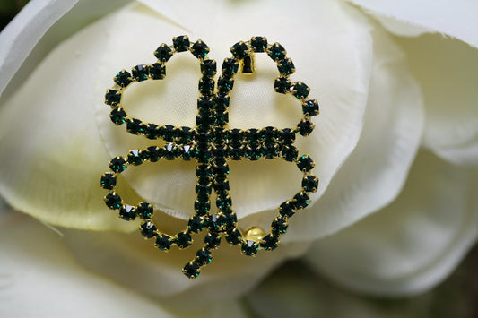 Rhinestone Emerald Shamrock Four-leaf Clovers Brooch Pin, Irish St. Patrice's Day Shamrock Jewelry Gift
