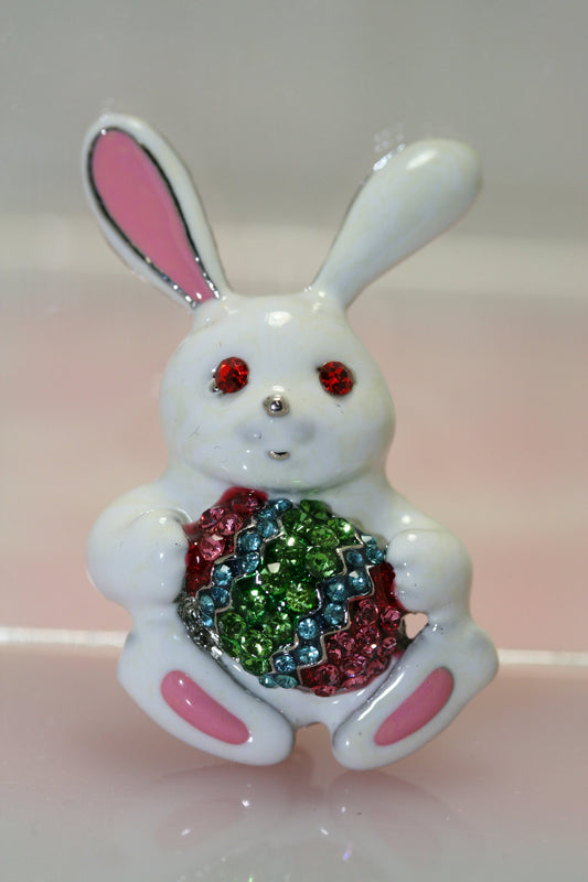Rhinestone Crystal Enamel Spring Easter Bunny Rabbit Egg Brooch Pin, Easter Egg With Bunny Pin, Easter Brooch Jewelry