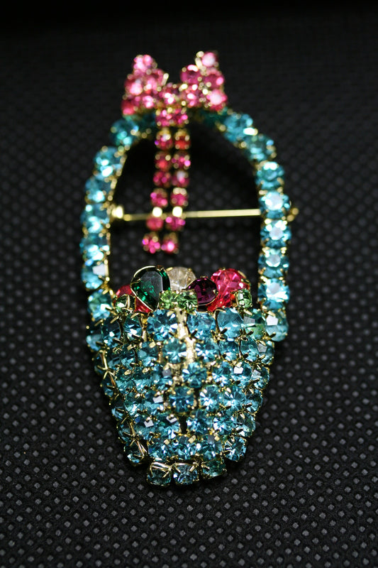 Rhinestone Easter Basket Brooch, Crystal Easter Egg Pin, Easter Jewelry Gift