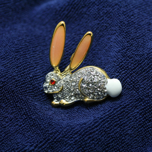 Rhinestone Crystal Easter Bunny Rabbit Pin Brooch, Bunny Rabbit Jewelry Gift (Leg, Arm Moveable)