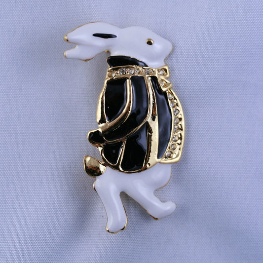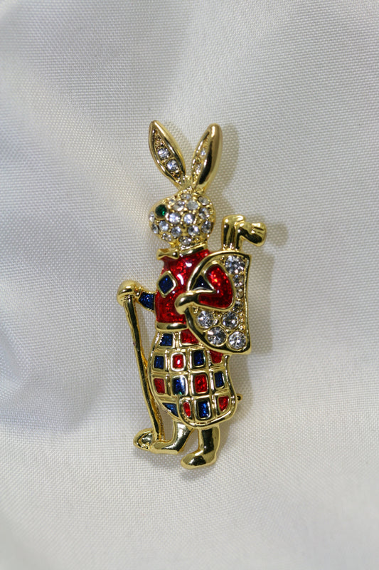 Rhinestone Enamel Easter Bunny Rabbit Golf Brooch Pin