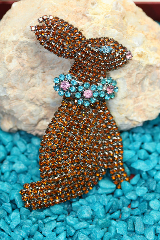 Rhinestone Easter Chocolate Bunny Brooch Pin, Easter Bunny Rabbit Jewelry Gift