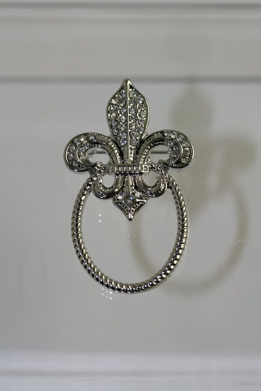 Rhinestone Fleur De Lis Crystal Eyeglasses Holder Pin Brooch, French Fleur De Lis Pin Brooch