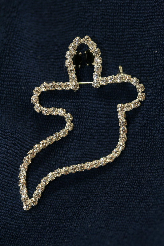 Rhinestone Crystal Outline Ghost Halloween Brooch Pin, White Ghost Brooch,