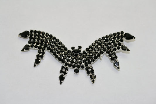 Rhinestone Crystal Black Bat Pin Brooch for Halloween, Prong-Set Halloween Jewelry