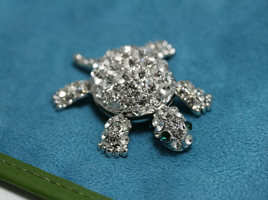 Rhinestone Clear Sparkling Crystals Sea Turtle Pin Brooch With Movable Features, 3D Sea Turtle Brooch Jewelry