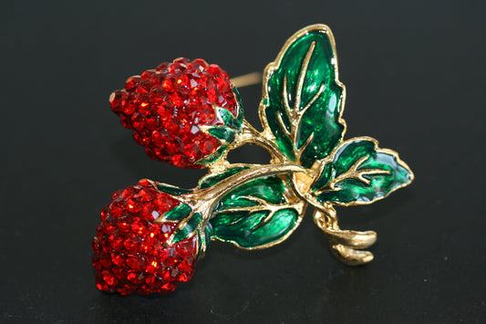 Rhinestone Double Strawberry Brooch Pin, Fruit Ruby Red Crystal Strawberry Brooch, Fruit Pin