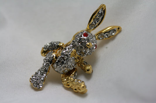 Rhinestone Crystal Easter Rabbit/Bunny Brooch Pin, Easter Jewelry Gift