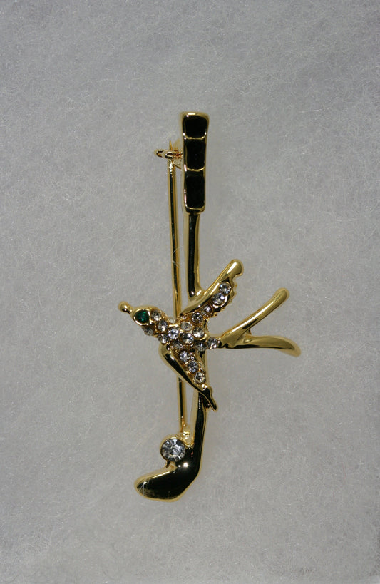 Rhinestone Goldstone Birdie on a Golf Wedge Pin Brooch