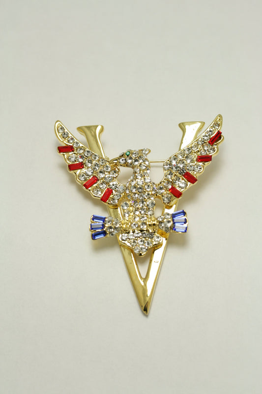 Rhinestone Patriotic 4th July Red White Blue USA Eagle V Pin Brooch, USA Eagle Brooch