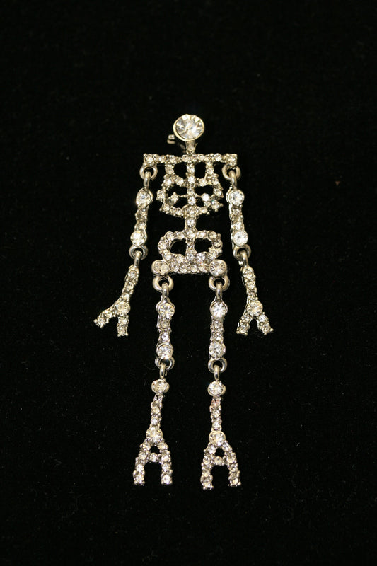 Rhinestone Halloween Scary Moveable Ghost Skull Skeleton Pin Brooch Jewelry 4"