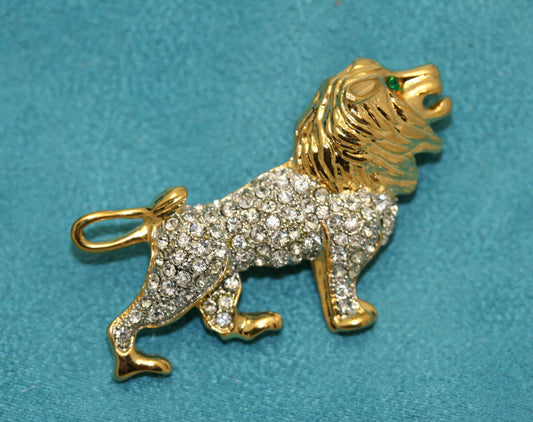 Rhinestone Gold-tone Vintage Majestic Lion Brooch Pin