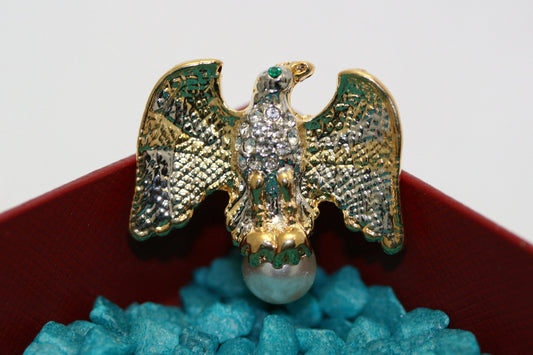 Rhinestone Gold Eagle Crystal Pearl Pin Small Dar Patriot Military USA Campaign Dar Brooch