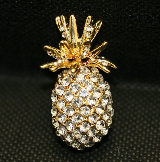 Rhinestone Pineapple Brooch Gold Tone Metal and Clear Rhinestones Pin