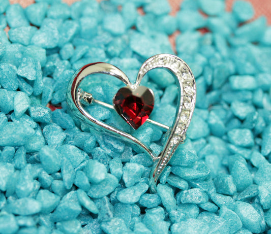 Rhinestone Heart Brooch Pin, Valentine's Red Heart Pin, Valentine's Jewelry Gift