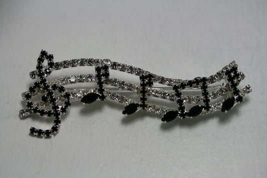 Rhinestone Music Notes Brooch. Rhinestone Silver and Black Music Notes Brooch, Music Note Pin