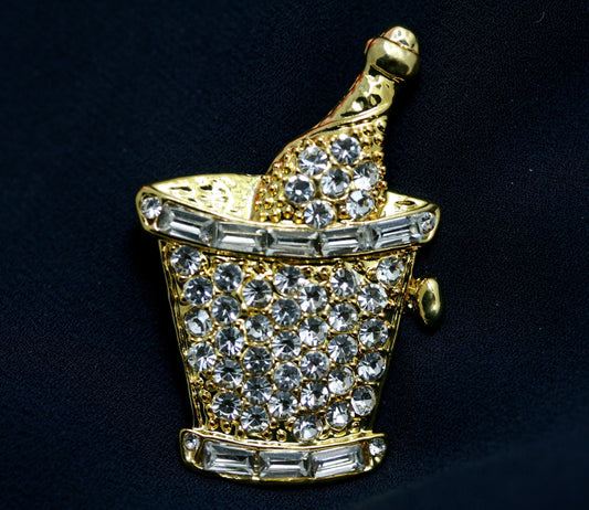 Rhinestone Ice Bucket with Champagne Bottle Pin Brooch, New Year Wedding Party Celebration Champagne Bottle Ice Bucket Pin