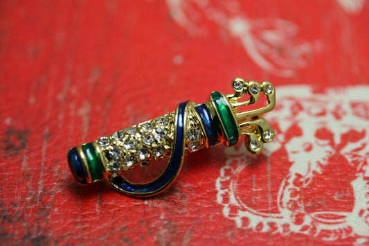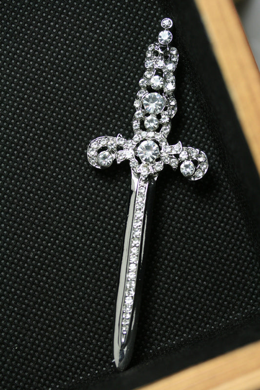 Rhinestone Jeweled Silver-plated Sword Pin Brooch Knight, Beautiful Vintage Crown Sword Jewelry Gift