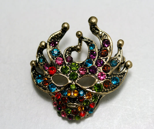 Rhinestone Mardi Gras Musk Brooch & Pendant, Multicolor Crystal Masquerade Ball Mask Pin Brooch