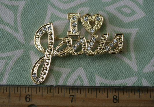 Rhinestone I Love Jesus Pin Brooch Austrian Crystal Handmade "I Love Jesus" Lapel Pin