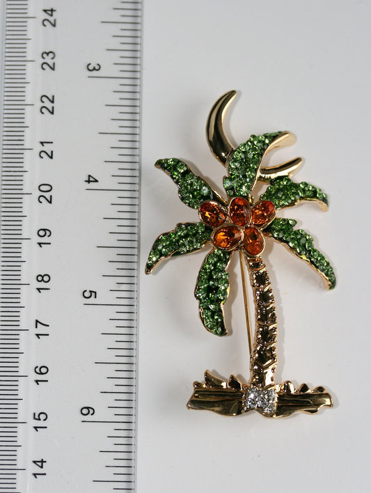 Rhinestone Palm Tree Pave Brooch Pin Tropical Beach Palm Tree Pin Brooch Lime Green Brown Rhinestone Jewelry