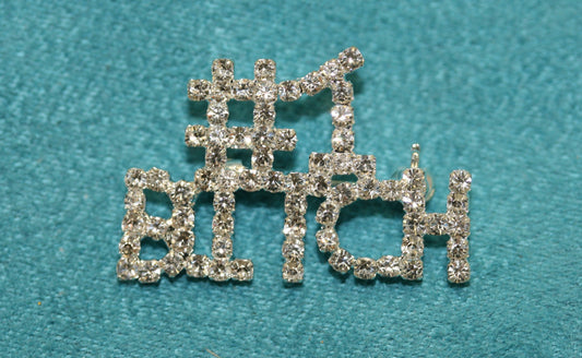 Shining Silver Color Rhinestones Brooch Jewelry "#1 BITCH" Word Pin for Women