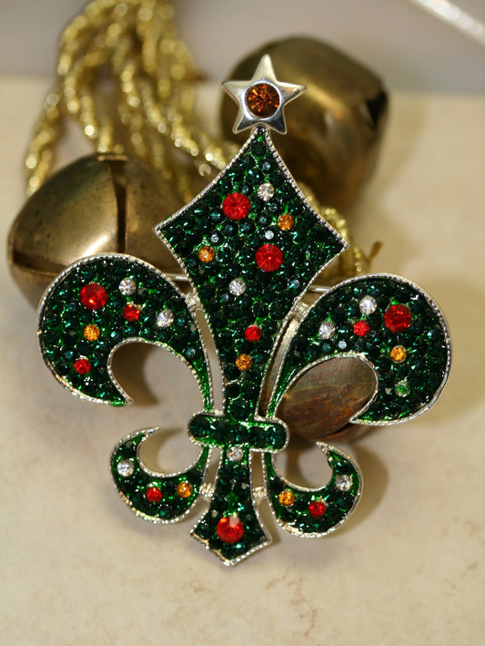 Rhinestones Fleur de Lis Brooch, France Fleur De Lis Pendant, Crystal French Fleur De Lis Jewelry Gift, New Orleans Fleur De Lis Brooch